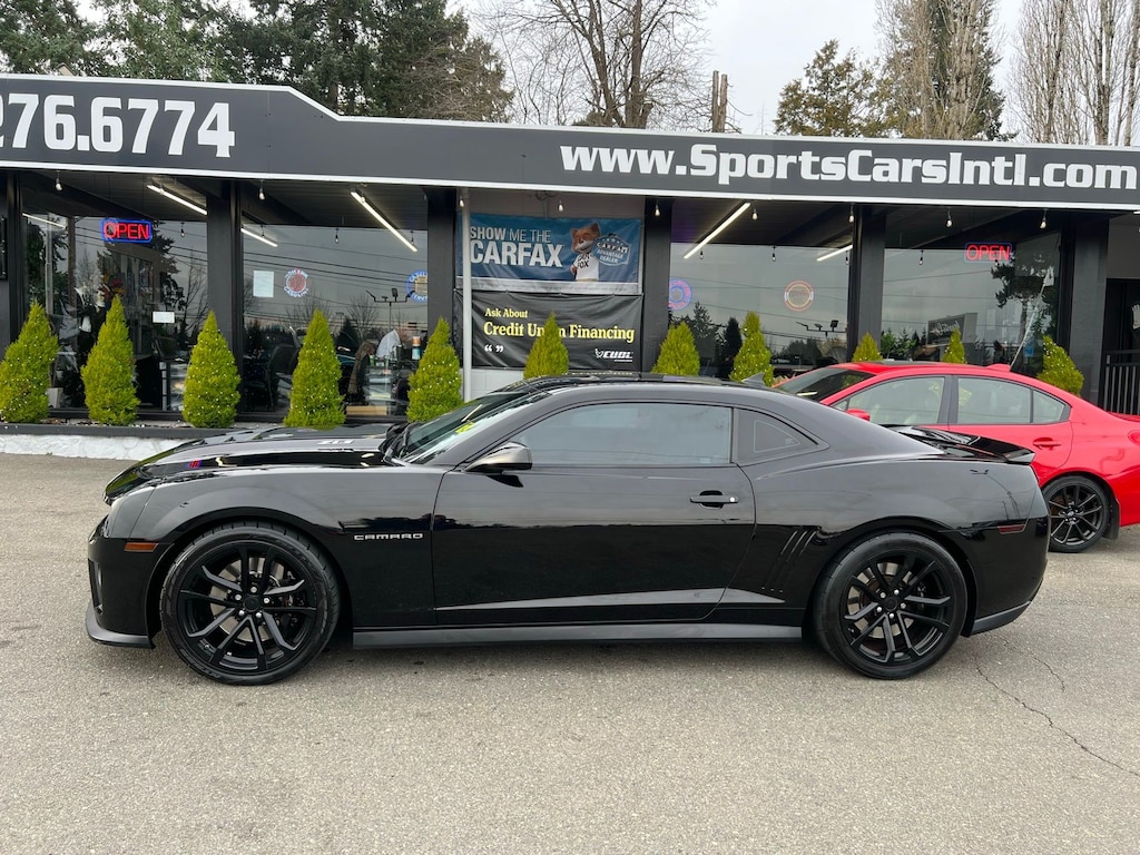This 2013 Chevrolet Camaro ZL1 is a true modern muscle iconfactory-built for serious performance with track-bred engineering and unmistakable presence. Finished in Black over a Black interior, this ZL1 is powered by the legendary 6.2L supercharged V8, delivering explosive power, a signature whine, and raw American musclepaired with a 6-speed manual transmission for an uncompromised, driver-focused experience.