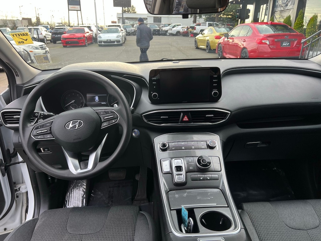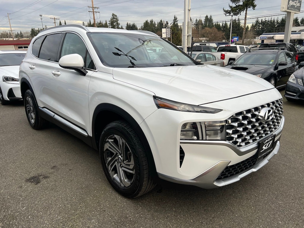 This 2021 Hyundai Santa Fe SEL AWD delivers modern styling, strong safety technology, and everyday versatility in a refined midsize SUV package. Finished in Quartz White with a Black interior, this Santa Fe is powered by a responsive 2.5L 4-cylinder engine paired with an 8-speed automatic transmission with SHIFTRONIC, providing smooth acceleration and confident efficiency.