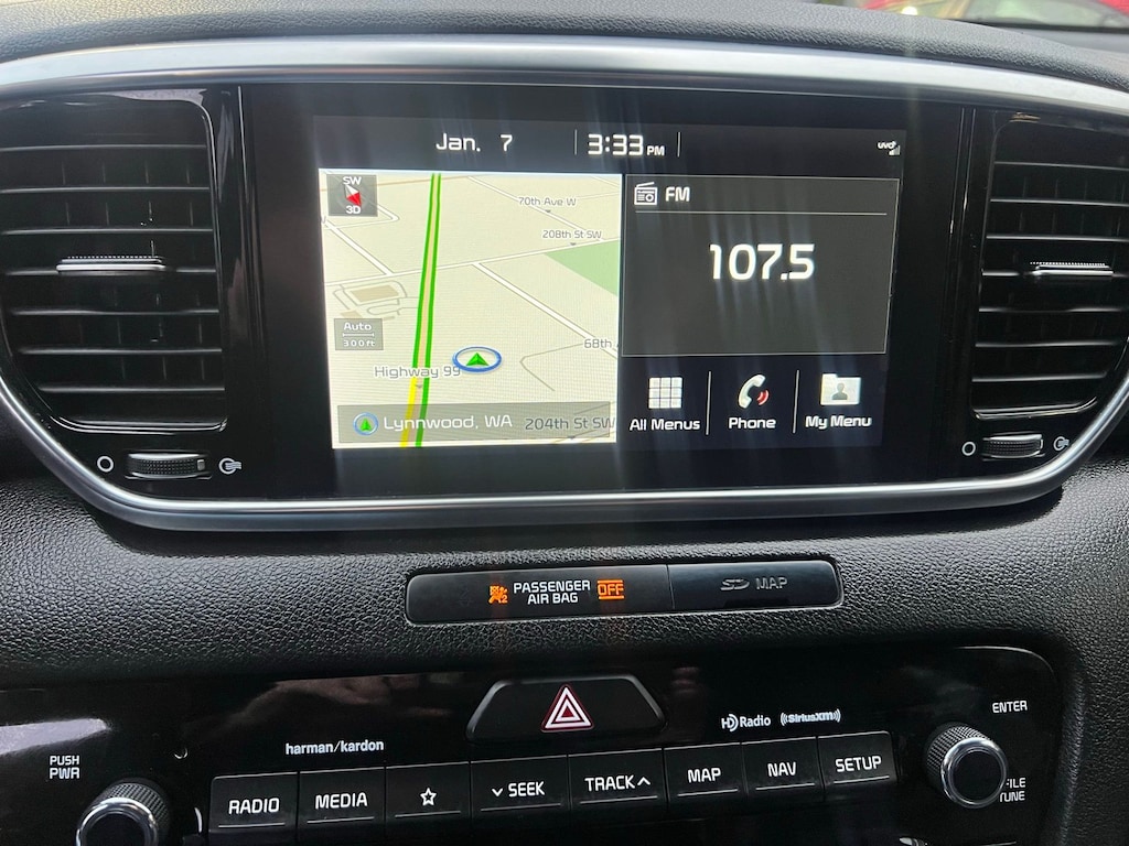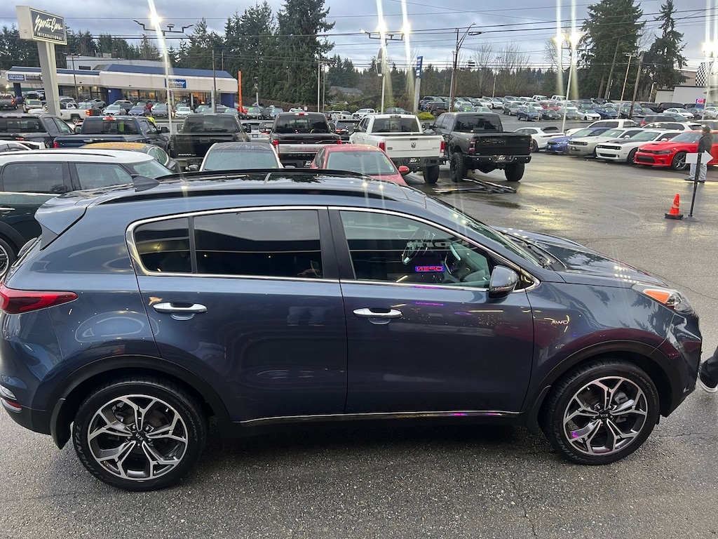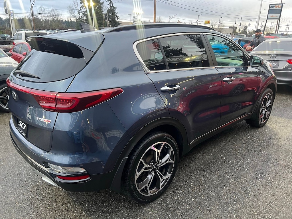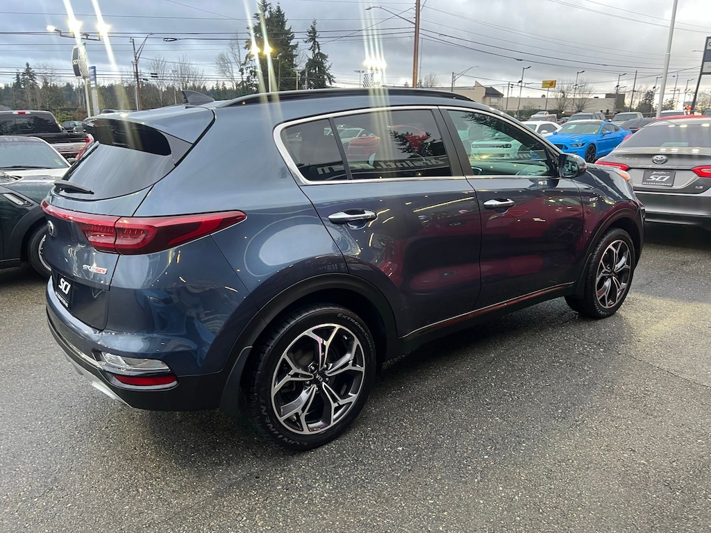 This 2020 Kia Sportage SX AWD delivers sporty turbocharged power, confident all-wheel-drive traction, and upscale features in a compact SUV that stands out from the crowd. Finished in eye-catching Pacific Blue with a Black interior, this Sportage SX is powered by a responsive 2.0L turbocharged 4-cylinder engine paired with a 6-speed automatic transmission, offering strong acceleration and smooth daily drivability.